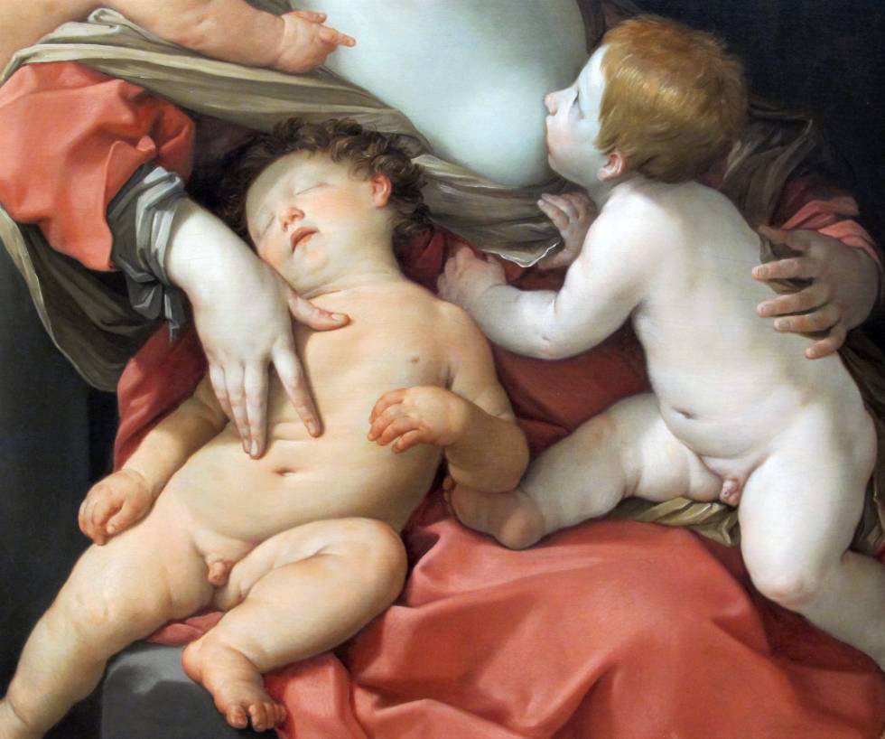 Outro belo exemplar dessa estética reniana do olhar está na pintura O Homem de Tristezas (óleo sobre tela, 51,5 x 44,5 cm, Rijksmuseum, Amsterdã). Cristo, recém-coroado de espinhos, volta-se à misericórdia do Pai e expressa, com os olhos revirados, seu lado mais humano. Marcado pelo sofrimento e pela dor. A própria definição do páthos artístico! Para uma visão mais panorâmica a respeito da expressividade facial na cultura estético-visual seiscentista, ver COURTINE, Jean-Jacques; HAROCHE, Claudine. “Caras e bocas das paixões – Desdobramentos da fisiognomonia no século XVII”. In: História do rosto: exprimir e calar as emoções. Do século XVI ao começo do século XIX. Petrópolis: Vozes, 2016, p. 75-100. - 107. CHEVALIER, Jean; GHEERBRANT, Alain. Dictionnaire des symboles. Paris: Éditions Robert Laffont / Éditions Jupiter, 1982, p. 733-734, 825; PASTOUREAU, Michel. Une histoire symbolique du Moyen Âge occidental. Paris: Éditions du Seuil, 2004, p. 179-193.