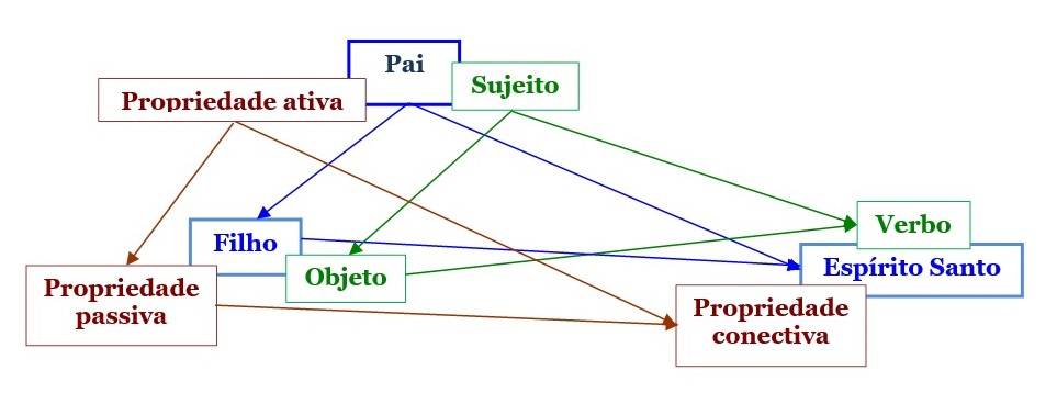 Ademais, nessa circular (e monocórdia) meditação ascensional está embutida a sua teoria dos correlativos: o Pai (a “bonificação”) é o sujeito (propriedade ativa); o Filho (a “bonificatividade”) é o objeto (propriedade passiva); e o Espírito Santo (“o ato de bonificar”) é o verbo (propriedade conectiva).38