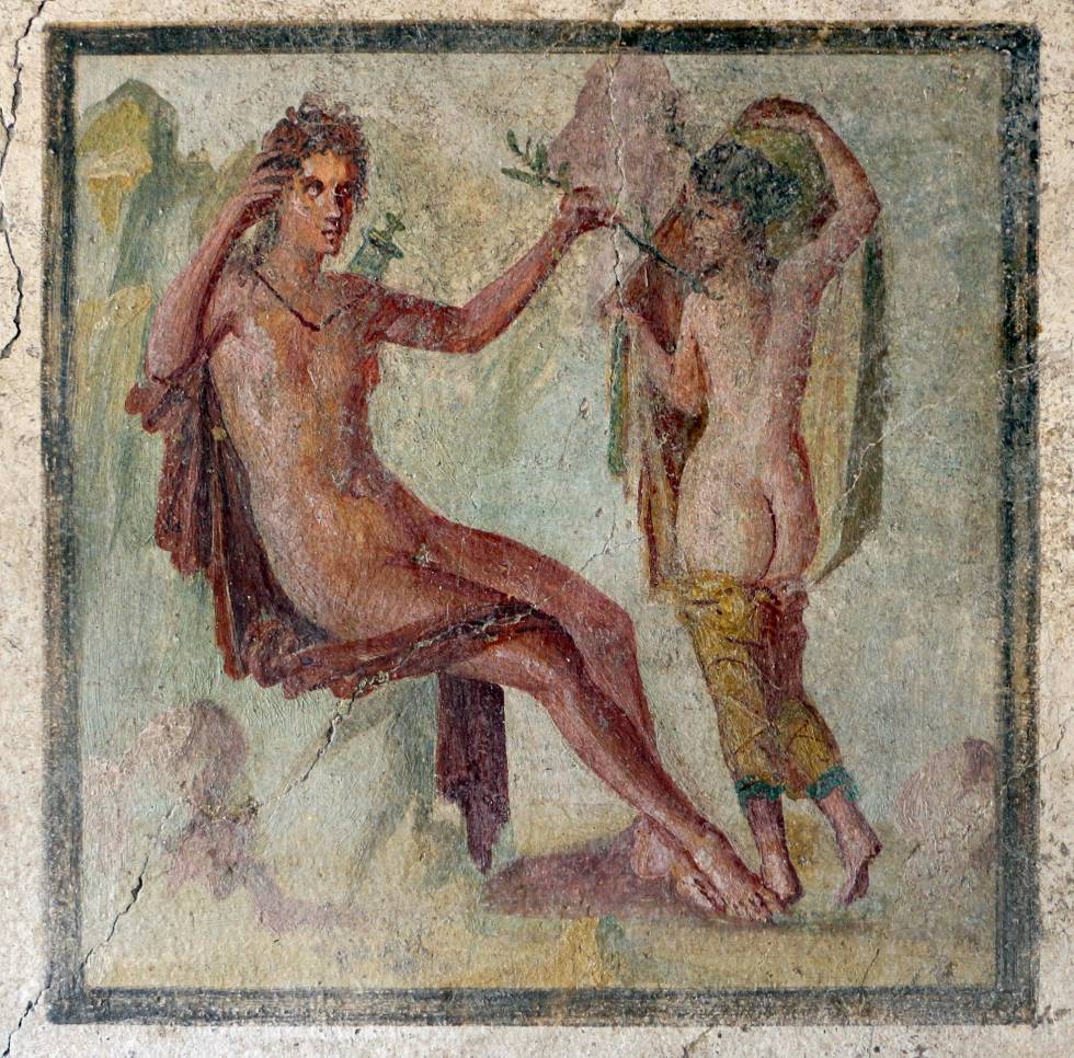 Apolo e Dafne. Afresco, 4° Estilo pompeiano (Fantasia, c.50-79), Casa de Públio Cornélio Tageste (Casa dell Efebo), Pompéia, Itália.