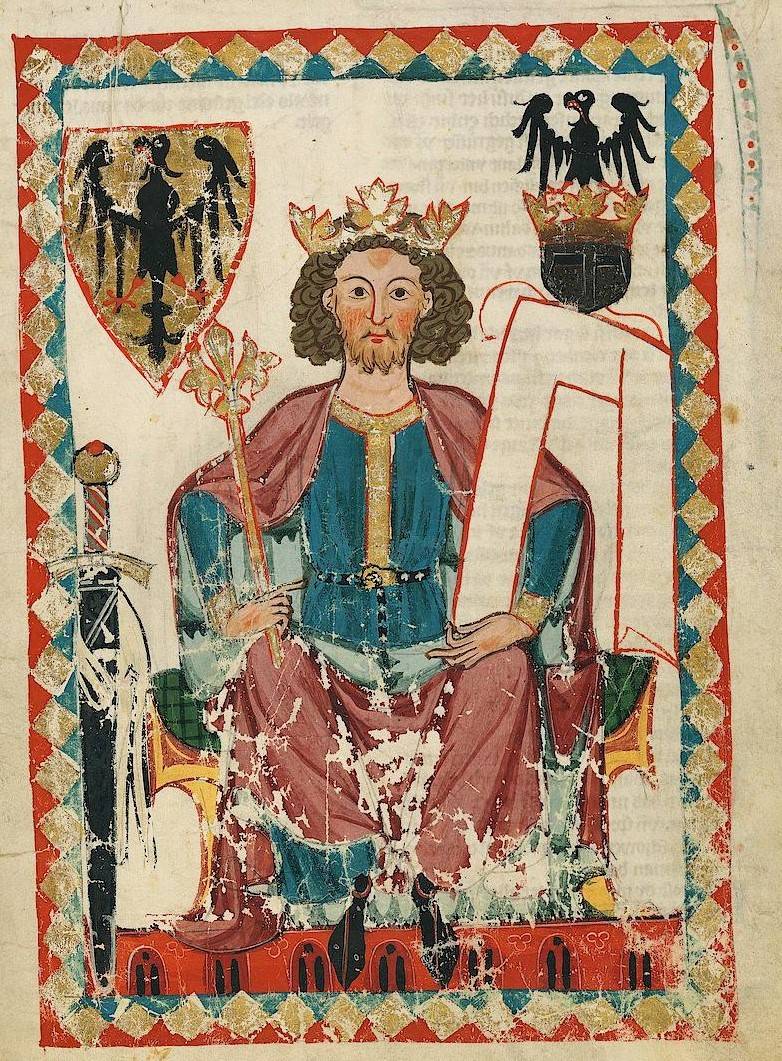 Heinrich VI Hohenstaufen (1165-1197). Cod. Pal. germ. 848. Große Heidelberger Liederhandschrift (Codex Manesse), Zürich, c. 1300-1340, folio 6r.