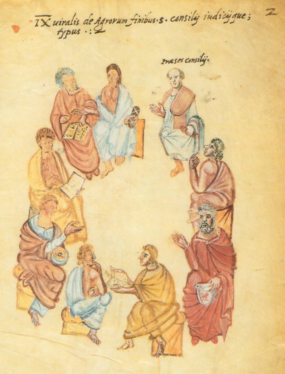 O mundo mental da Cultura pressupõe seu compartilhamento. Iluminura de uma cópia do séc. IX do Corpus Agrimensorum Romanorum (sécs. V-VI), tratado romano de Agrimensura. Aachen, Renascimento carolíngio (c. 825), Biblioteca Vaticana, Pal. lat. 1564.