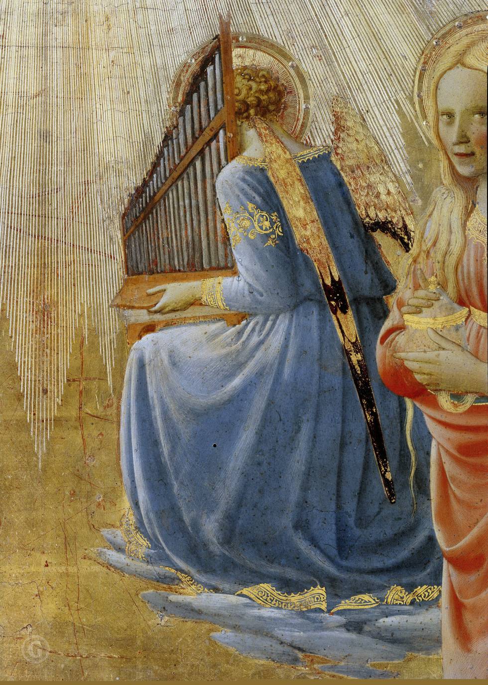 Detalhe de A Coroação da Virgem (c.1432) de Fra Angelico (c.1395-1455). Têmpera no painel, 112 x 114 cm, Galeria Uffizi, Florença.