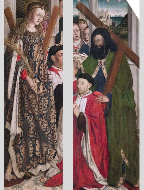 - 136. Santa Eulália com troncos azuis no manto; Santo André com um manto verde: dialética santa azul/verde tipicamente medieval: “O verde mantém vínculos estreitos com o azul...” – PASTOREAU, Michel. Una Historia Simbólica de la Edad Media Occidental, op. cit., p. 131.