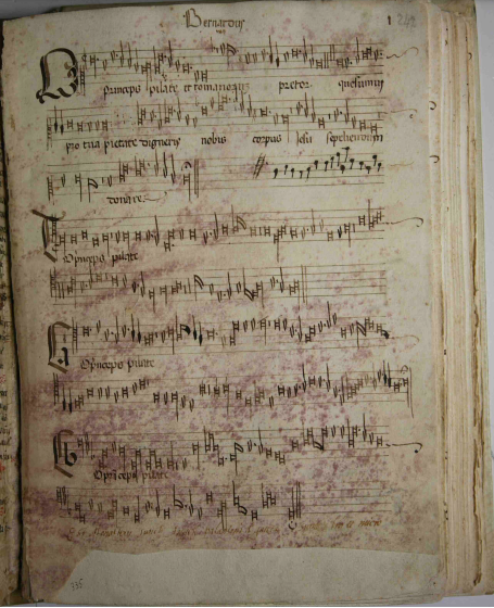 Primeira página da peça Princeps Pilate de Bernadus que se encontra à página 247 do manuscrito preservado na Biblioteca dell’Abbazia.