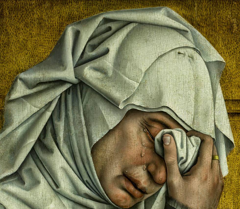 Detalhe de A Deposição da Cruz (c. 1435), de Rogier van der Weyden (c. 1400-1464). Óleo sobre madeira, 204,5 x 261,5 cm, Museo del Prado, Madri.