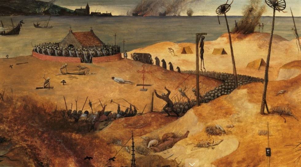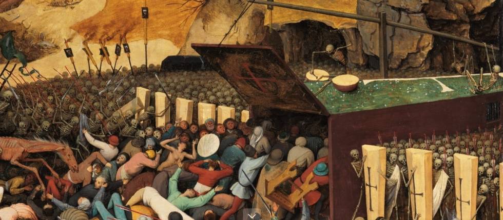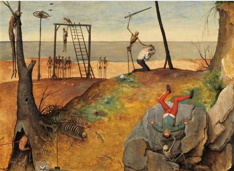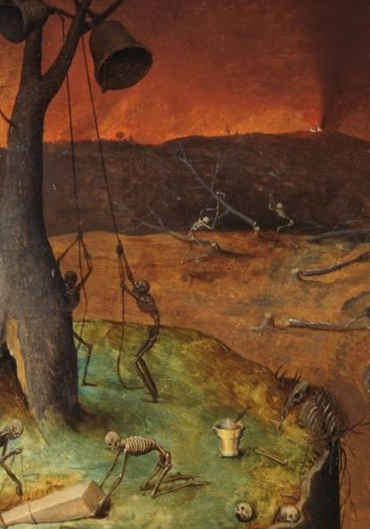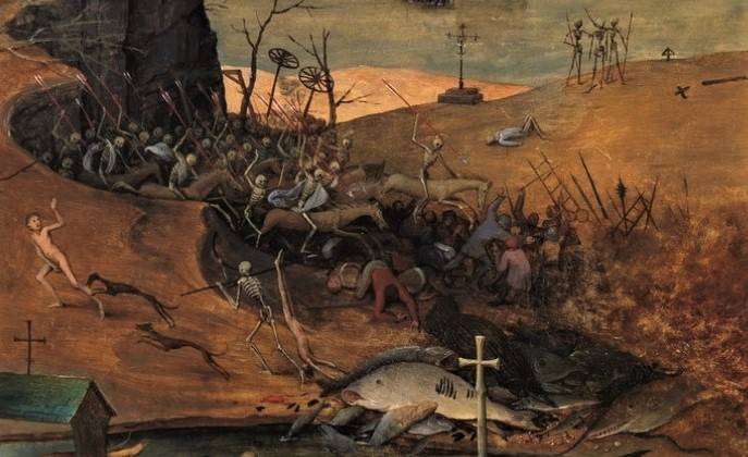 Detalhe de O Triunfo da Morte (c. 1562) de Bruegel, o Velho (1525-1569). Óleo sobre madeira, 117 x 162 cm, Museo del Prado, Sala 025.