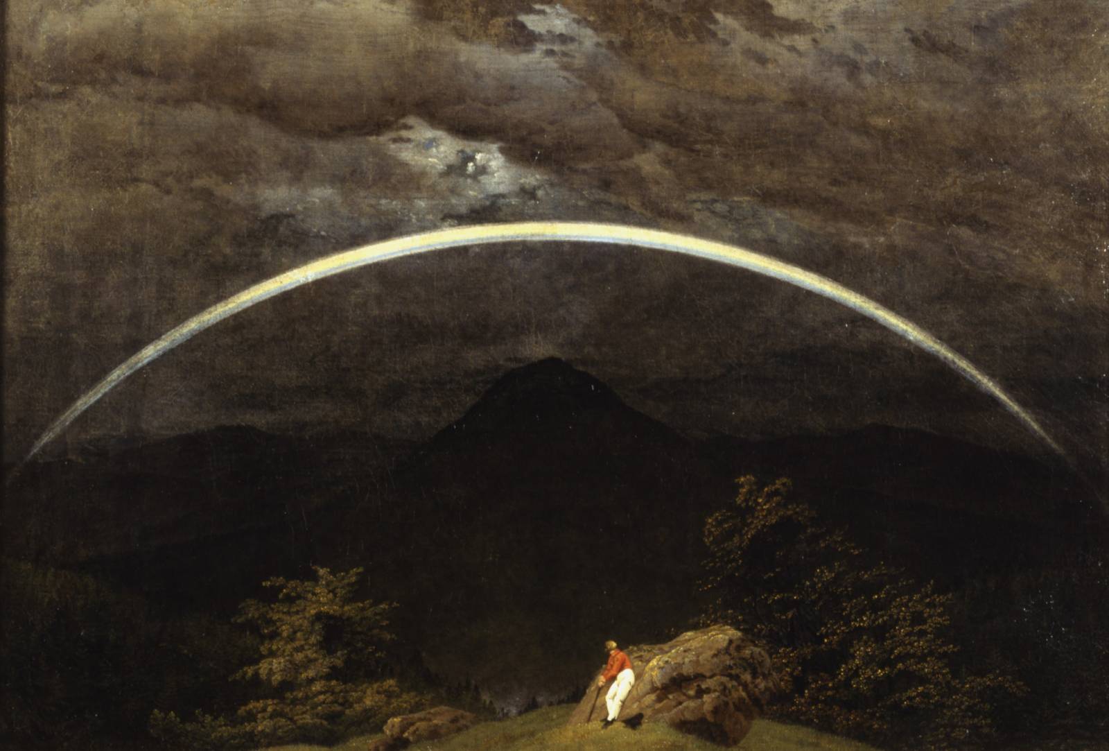 Arco íris em uma paisagem de montanhas (1810), de Caspar David Friedrich (1774-1840). Óleo sobre tela, 70 x 102 cm, Museu Folkwang, Essen, Alemanha.