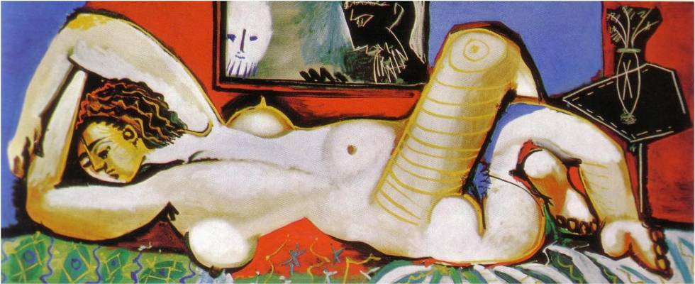 A languidez do solitário corpo feminino que se espreguiça e crê estar livre dos cobiçosos olhares é uma ilusão.1 Picasso (1881-1973) bem o soube. Desde jovem, o artista dedicou atenção ao tema: de tal modo representou figuras masculinas a observar a nudez feminina que, a partir da década de 30, o sono-vigília se tornou uma de suas preocupações mais constantes.2 Ele conhecia bem essa tradição erótica: cenas de ninfas adormecidas (relacionadas à visão e ao desejo) e observadas por machos em vigília fazem parte da tradição da Arte. Topos como Júpiter e Antíope ou Sátiro e a Ninfa foram tratados por grandes nomes como Correggio (1489-1534), van Dyck (1599-1641), Ingres (1780-1867), além do próprio Picasso. No início de sua carreira, a dialética sono/vigília irrompeu em sua obra quase como uma confissão.3