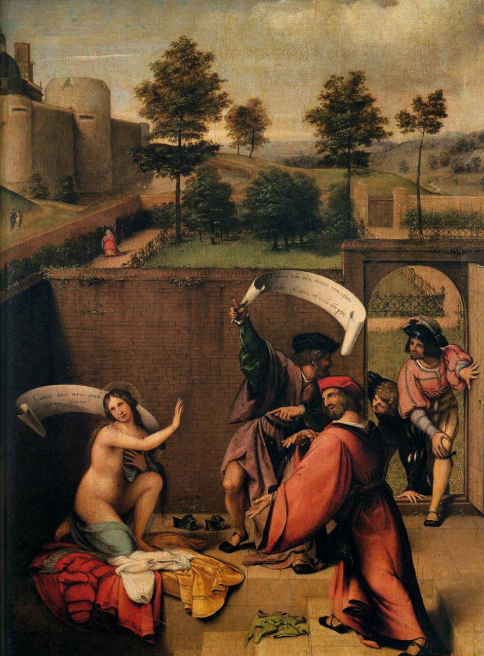 Susana e os anciãos (1517), de Lorenzo Lotto (c.1480-1556). Óleo sobre painel, 50 x 60 cm, Coleção Contini-Bonacossi, Florença.