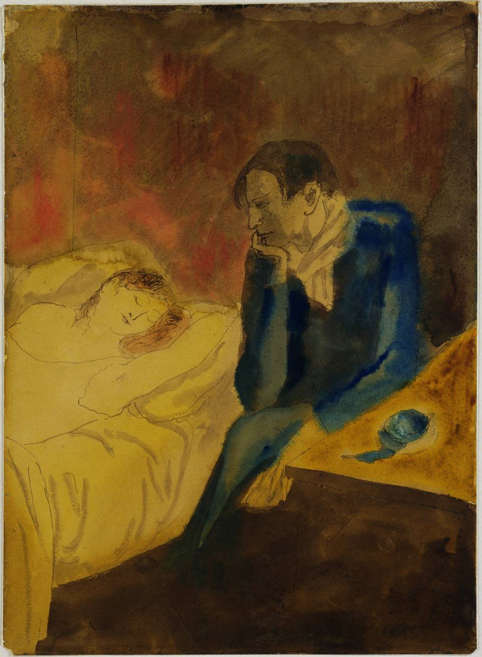Meditação (Contemplação, 1904) de Pablo Picasso (1881-1973). Aquarela e nanquim sobre papel, 36,9 x 26,7 cm, MoMA, Nova York.
