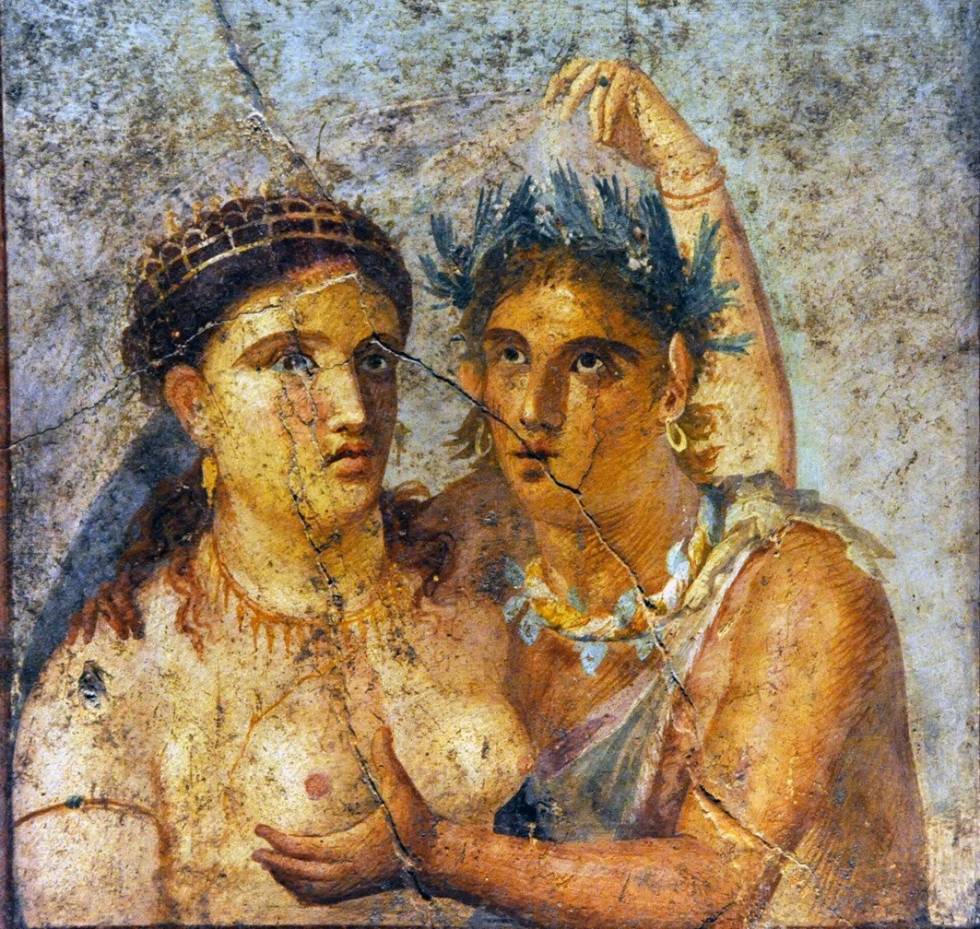 Um largo salto histórico (e cultural) em nossa tradição revela o quão significativo e desejado é esse toque. Em um dos afrescos eróticos preservados pela erupção do Vesúvio sobre Pompéia (79 d. C.) na casa de Lucius Caecilius Iucundus (c.20-62), argentário da cidade8, um Sátiro toca, resoluto, o seio que lhe é francamente ofertado por uma vigilante Ménade (μαινάδες), divindade feminina louca e extática que, ao ser possuída pelo deus Baco (Βάκχος), entrava em um estado de frenesi (imagem 3).