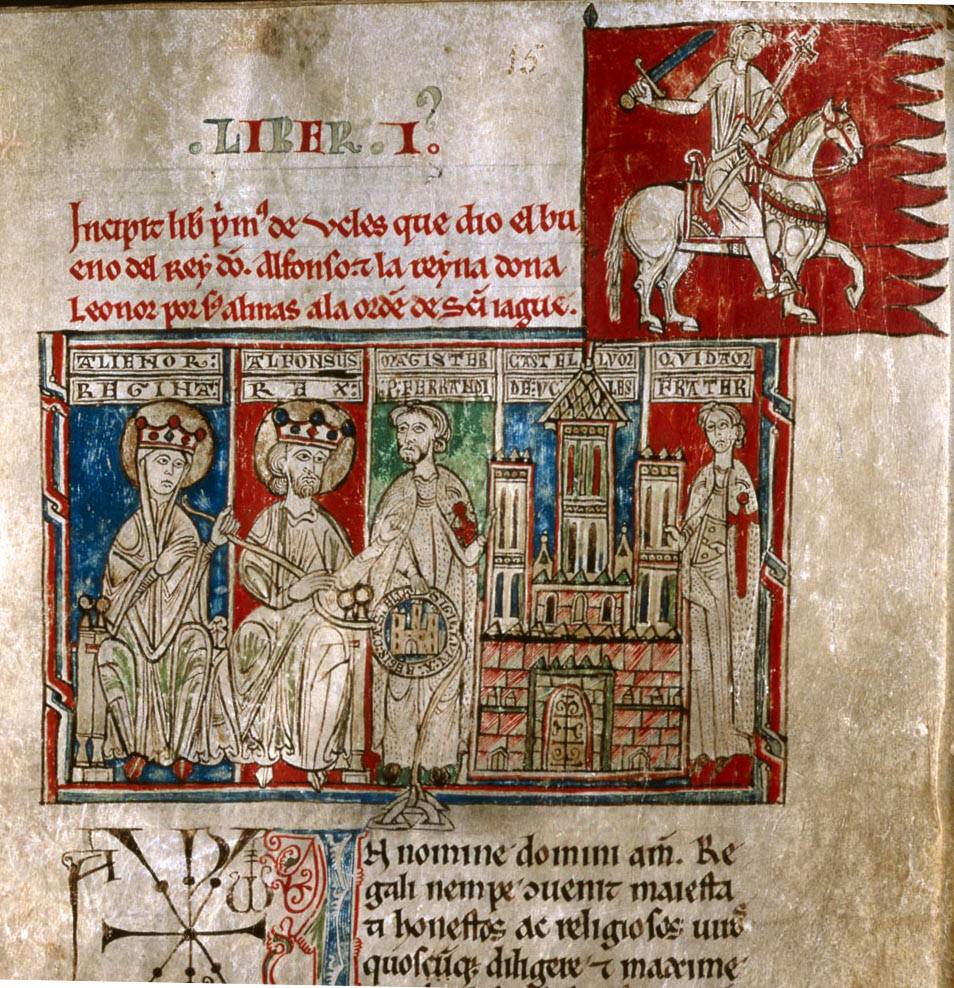 Afonso VIII e a rainha Leonor concedendo a cidade e a vila de Uclés ao mestre da Ordem de Santiago (Miniatura del Tumbo Menor de Castilla. Archivo Historico National. Madrid).20
